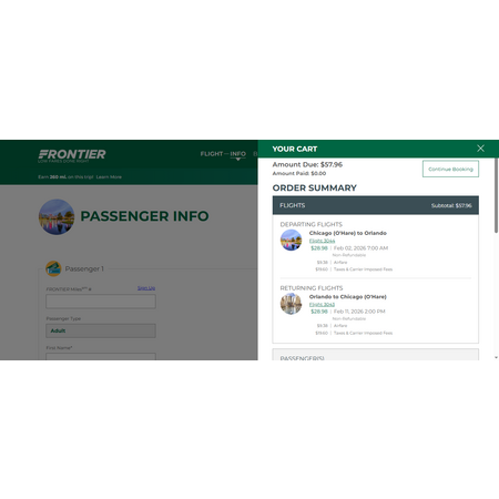 Frontier Airlines, an ultra low-cost, super basic economy airline have airfares travelling to and from Chicago (ORD) and Orlando FL (MCO) for $58, nonstop. Your super low airfare will only take you and a personal item from point A to point B. There is no seat selection, no carry-on bag, no seat selection and no change.