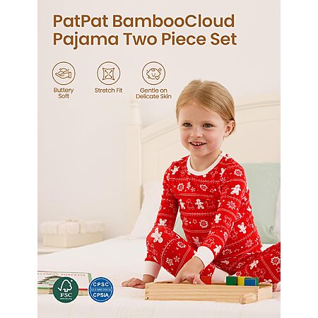 PATPAT Bamboo Viscose Pajama Set for Toddlers with Improved Tensile Strength, Snug Fit Pjs Sleeper for Baby Boys Girls Kids, Crumbly Xmas, 2T $14.98