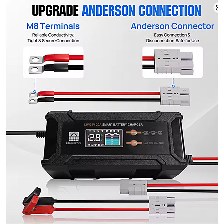 ECO-WORTHY 12V/24V 20A Lithium LifePO4 14.6V Smart Battery Charger & Maintainer $32 + free s/h
