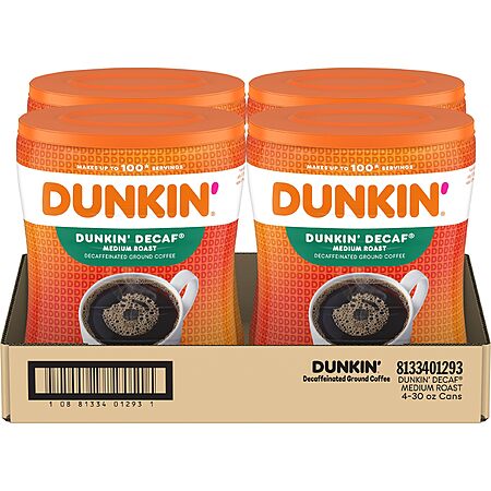 Dunkin' Decaf Medium Roast Ground Coffee 30 Ounce (Pack of 4) 40.13 with S&S