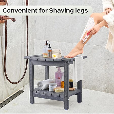 18.7" LyriFine HDPE Waterproof Shower Bench for Inside Shower w/ with Shower Head Holder & Storage Shelf (Grey) on sale for $39.99 - $10 off when you enter the coupon code
