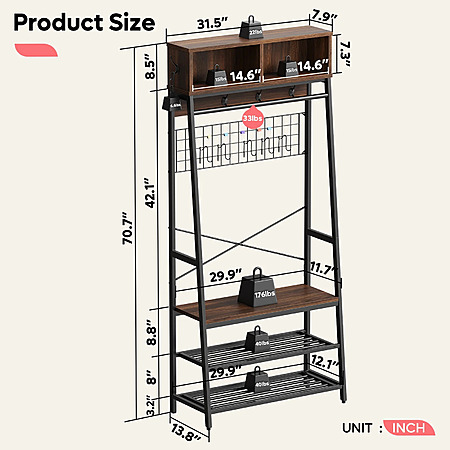 70" Bestier Modern Hall Tree with Shoe Bench $69.99