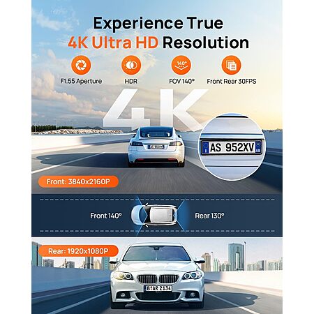 70mai 4K Dash Cam Front & Rear with 128GB Card (A800SE), Built in Wi-Fi 6 & GPS Car Camera, Super Night Vision, ADAS, 3'' IPS Screen $89.99 + Free Shipping
