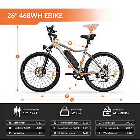 5TH WHEEL AB17 Electric Bike, 500W Motor, 468Wh Removable Battery, 20 MPH Max Speed, Color LCD Display, Front Suspension (3 colors) $258.XX + Free S/H