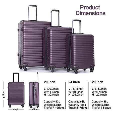 About this item- Durable Material: Made of 100% ABS material, this luggage set is impact-resistant, scratch-resistant, and lightweight.