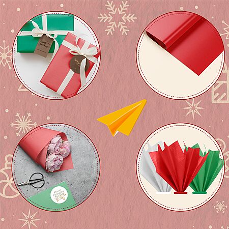 - There are 100 sheets in this pack, with a mix of classic red, green, and white colors. These red and green tissue paper sheets are perfect for capturing the festive Christmas spirit.