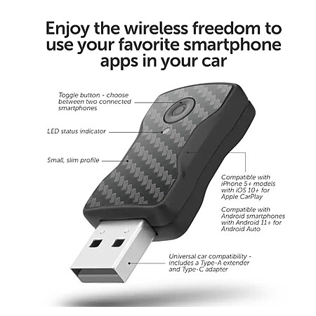 Aluratek - Apple CarPlay and Android Auto Combo Wireless Car Adapter - Black $42.99