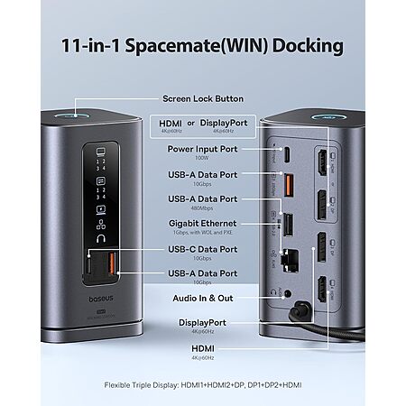 Baseus Spacemate 11-in-1 Docking Station w/ 100W PD & Triple 4K Monitor Extension $65.99 + Free Shipping w/ Prime