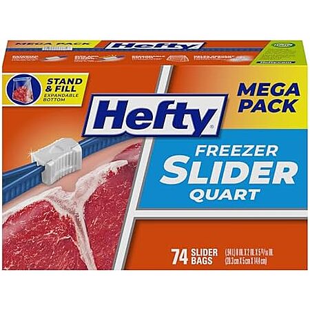 [S&S, AC] $4.98*: 74-Count 1-Quart Hefty Slider Freezer Kitchen Storage Bags at Amazon