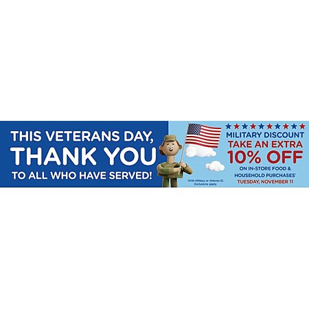 Kroger Family Stores: 10% discount for Military and Veterans 11/11