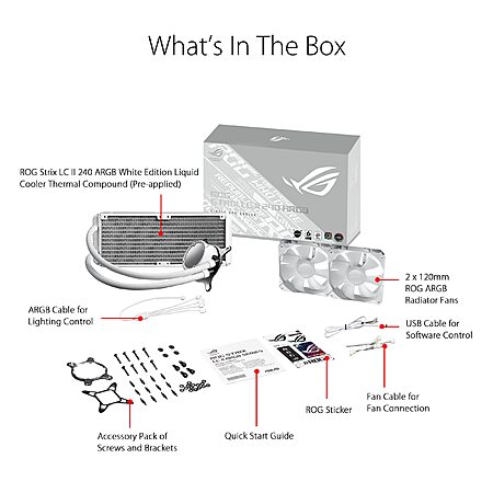 Model: ASUS ROG Strix LC II 240 ARGB White Edition All-in-one AIO Liquid CPU Cooler 240mm Radiator, Intel LGA1700, 115x/2066 and AMD AM4/TR4 Support, 2X 120mm 4-pin PWM Addressable RGB Radiator Fans