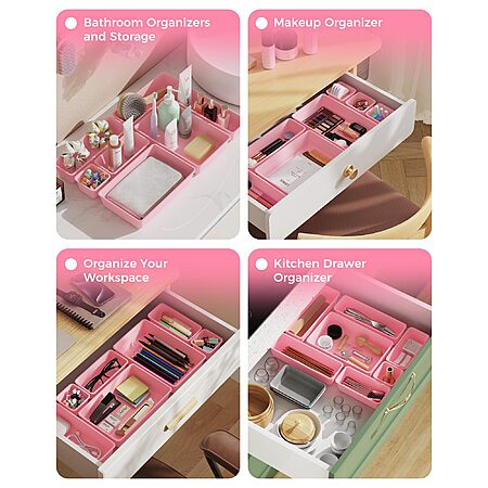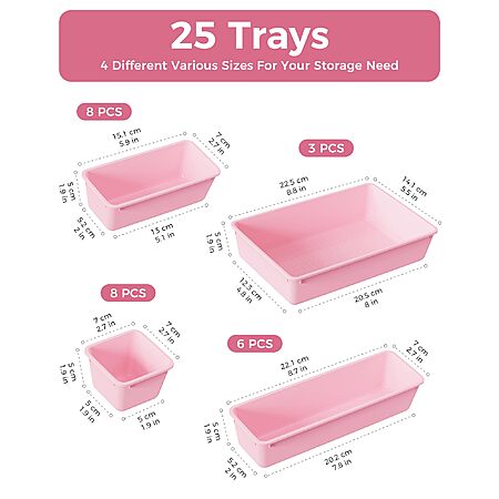 BiuLeon US via Amazon[amazon.com] has for Prime Members: 25-Piece BiuLeon Plastic Drawer Organizers Set (4-Sizes, Pink) back in stock for $11.99. Shipping is free.