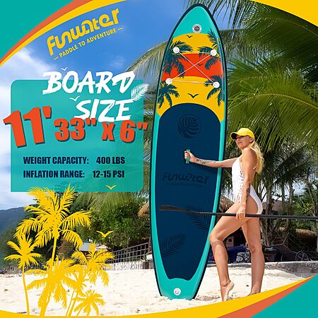 11' Funwater Inflatable Stand Up Paddle Board w/ SUP Accessories , Paddle, Pump & Travel Bag for $209.99 - - $60 when you 'clip' the coupon on product page - $75.60 w/ promo code