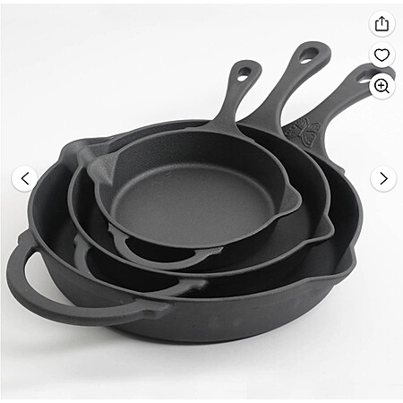 The Pioneer Woman Timeless Beauty 3 Piece Cast Iron Skillet Set Pre Seasoned Oven Safe, Black $29.98