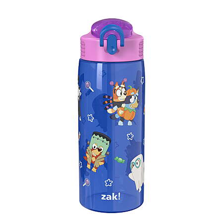 Zak Designs 25oz Bluey Halloween Blue Kids Straw Water Bottle, Durable Plastic Park Bottle with Easy-Open Locking Spout Cover for Travel, Built in Carry Handle $2.13