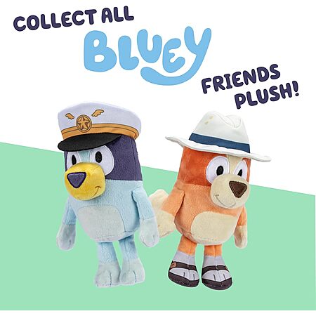 Model: Bluey Friends Plush, Exclusive 2pk Plush Toys Including Captain and Holiday Bingo, Detailed Soft Plush Made, 6.5-9 inch / 16-23 cm Tall