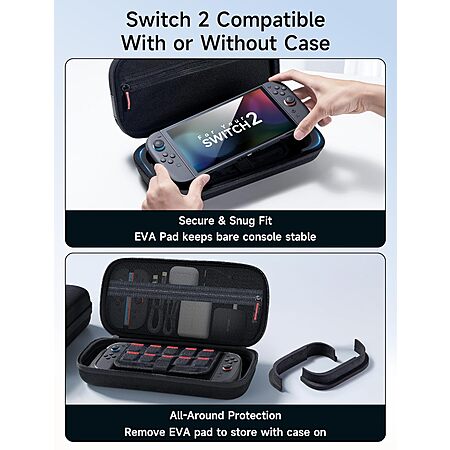 - Flexible Fit: Includes removable EVA pads to snugly fit a bare Switch 2 or accommodate consoles with protective cases, catering to diverse user needs.