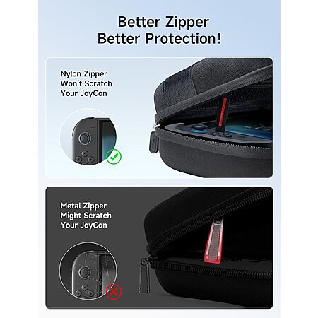 - Large Capacity: Features a spacious zippered mesh pocket for Joy-Cons, charger, straps, cables, earphones, and power banks, plus 20 game card slots for organized storage.