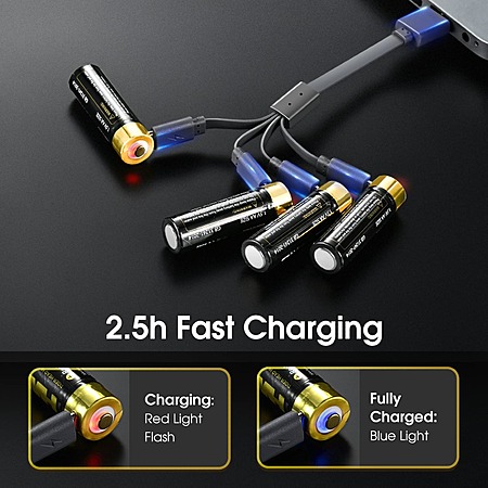 4-Pack HW Rechargeable AA Lithium Batteries 2800mWh w/ Micro USB Cable $6.99 + Free Shipping w/ Prime