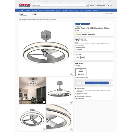 Costco Members: Artika Edwin 23" LED Chandelier Ceiling Fan $99.99