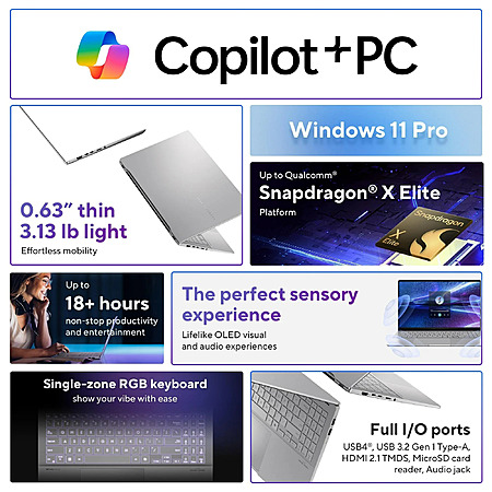 ASUS VivoBook S 15: 15” 3K 120Hz OLED, Snapdragon X1E 78 100, 16GB LPDDR5, 1TB SSD $779.50