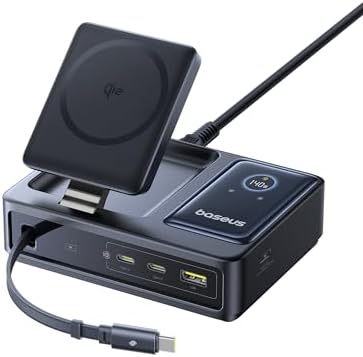 Model: Baseus Nomos 5-in-1 Charging Station 140W, Qi2 Certified 15W Magnetic Wireless Charger with 100W Retractable Cable, GaN Fast USB C Desktop Charger for Magsafe, iPhone 16/15 Pro Max, MacBook Pro