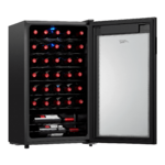 | Product Description: | Arctic King Premium 34-Bottle Wine Cooler Introducing the Arctic King Premium 34-Bottle Wine Cooler - the perfect addition to any wine lover's home or establishment. This wine cooler is designed to provide a sophisticated and temperature-controlled environment, ensuring your precious wine collection is stored at its best for your enjoyment. Measuring at 17.3" by 18.9" by 33.1", this premium wine cooler's compact size allows it to fit seamlessly into various spaces, making it suitable for kitchens, dining rooms, or even cozy wine cellars. With a capacity to hold up to 34 wine bottles, this wine cooler offers ample space for both storing and displaying your favorite wines. The sleek and modern design makes it an elegant and attractive piece that complements any decor, adding a touch of luxury to your space. The cooler features adjustable temperature control, allowing you to set the perfect storage conditions for red, white, or sparkling wines. The interior LED lighting softly illuminates your collection, creating a beautiful showcase for your wines. The glass door with stainless steel trim not only adds a contemporary look but also allows you to easily view your wines without having to open the cooler, ensuring temperature consistency and minimizing temperature fluctuations. Whether you're a seasoned wine enthusiast or just starting your collection, the new Arctic King Premium 34-Bottle Wine Cooler is designed to keep your wines in optimal condition and ready to be uncorked for special occasions or everyday indulgence. Elevate your wine storage and savor the full potential of your wine with this premium wine cooler. Order now and raise a glass to delightful moments and exceptional wines. With a capacity to hold up to 34 wine bottles, this wine cooler offers ample space for both storing and displaying your favorite wines. Measuring at 17.3" by 18.9" by 33.1", this premium wine cooler's compact size allows it to fit seamlessly into various spaces, making it suitable for kitchens, dining rooms, or even cozy wine cellars. The wine cooler's sleek and modern design adds an elegant touch to any space, complementing any decor and enhancing the overall aesthetics. The cooler features standard adjustable temperature control, allowing you to set the perfect storage conditions for red, white, or sparkling wines, ensuring they are stored at their optimal temperature. The interior LED lighting softly illuminates your wine collection, creating a beautiful showcase. The glass door with stainless steel trim not only adds a contemporary look but also allows you to easily view your wines without having to open the cooler, preserving the wine's quality and minimizing temperature fluctuations. |
