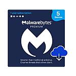1-Year Malwarebytes Premium Security (5-Devices/Digital Download) $17.99