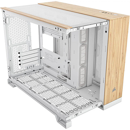 CORSAIR 2500X Micro ATX Dual Chamber PC Case, White/Bamboo $59.99