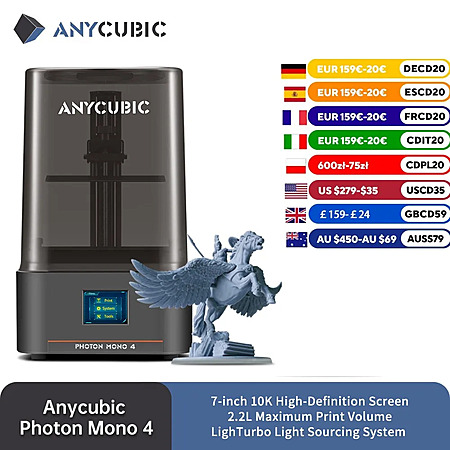 ANYCUBIC Photon Mono 4 AE Version LCD UV Resin 3D Printer High-Speed 3D Printing 7" 10K high-definition screen 153×87×165mm $137