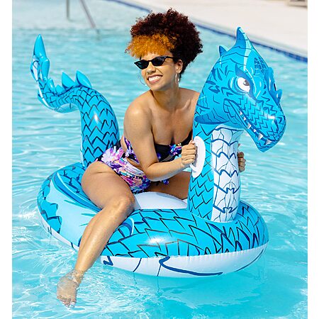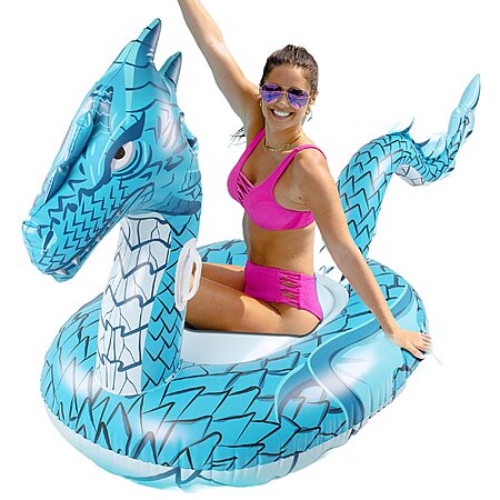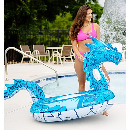 35" Monsoon Inflatable Ride On Pool Float for Adults (Blue Dragon) for