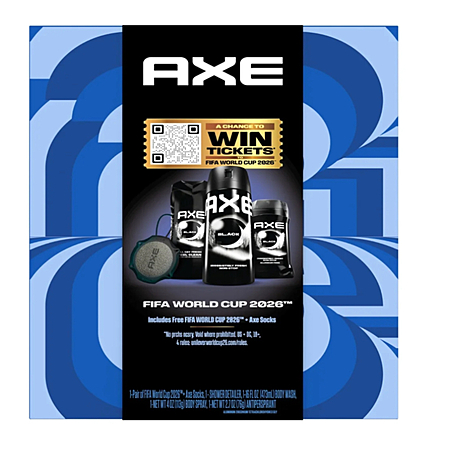 AXE Black Regimen x Fifa World Cup Body Care Gift Set with Body Wash, Deodorant Spray, Antiperspirant Stick & Shower Tool + Socks - $15 + free ship with Walmart+