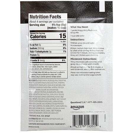 Happy Belly Mushroom Gravy Mix, 0.75 ounce is available on Amazon for $0.55 (originally $0.69, $0.73/ounce).