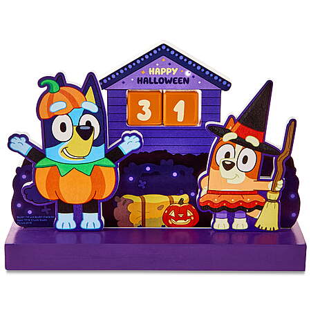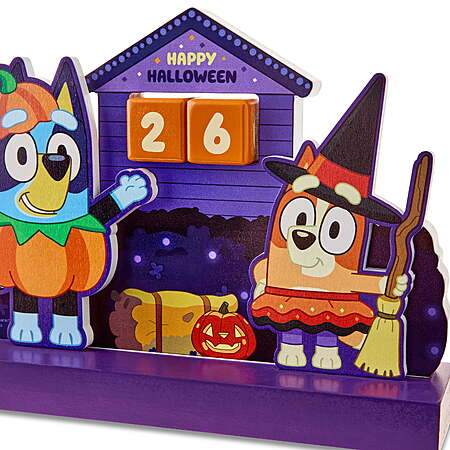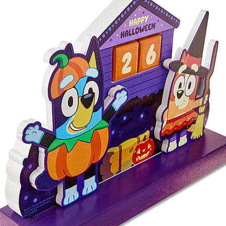 Bluey and Bingo Halloween Countdown Calendar – Wooden Tabletop Décor with Movable Date Block for