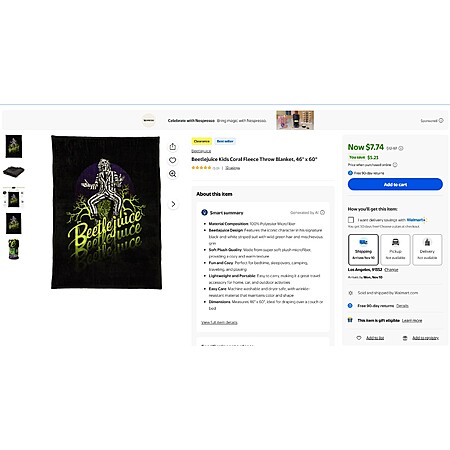 Beetlejuice Kids Coral Fleece Throw Blanket, 46" x 60" $7.74