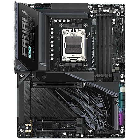 The GIGABYTE X870E AORUS ELITE X3D AM5 is a high-end full size atx x870e (top end chipset) motherboard. The am5 socket currently supports zen4 and zen5 cpus, with confirmation that future generation zen6 cpus will be a drop-in upgrade (and current rumors are that am5 may support the two gen in the future zen7 cpus as well). This motherboard is well suited for both cpu and memory overclocking, with a substantial 16(8+8 parallel; 80A)+2(80A)+2(60A) phase vrm and an 8-layer pcb. Heatsink coverage is quite extensive, and there's a thermal backplate. Overall storage and i/o are quite good. The primary x16 slot is gen5, and there are four m.2 slots, two being gen5 and the others being gen4 (second gen5 m.2 slot shares bandwidth with the usb4 controller). For networking it has wifi 7 (Supports 11be 320MHz), bluetooth 5.4, and 5GbE lan. It also has a suite of additional overclocking features (marketed as "AI", of course), though that's not a major selling point in their current state.
