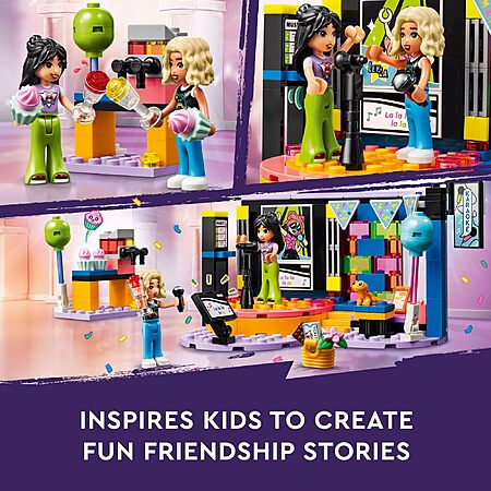 Amazon.com has LEGO Friends Karaoke Music Party Set, Pretend Play Toy for Kids, Girls and Boys Ages 6 Years and Up Who Love Singing, Includes Mini-Doll Characters Liann and Nova and a Gecko Figure, 42610 on sale for $9.59.