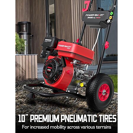 $176*:PowerSmart Gas Pressure Washer 3400 PSI, 2.5 GPM Gas Powered Pressure Washer, 212CC Engine, 10" Wheels, 5 Nozzles for Patio, Car, Driveway, Fence & Home Cleaning