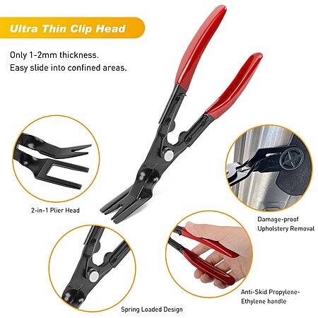 - Package Include:Including 11pcs interior trim disassemble tools, 2pcs release tools, 2pcs stereo removal tools, 3pcs Car terminal removal tools, 1pc Trim Clip Removal Pliers, and a portable storage bag