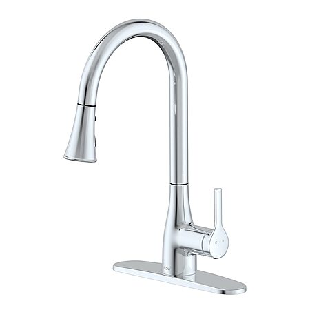 Lowes [lowes.com] has FLOW Brushed Nickel Single Handle Deck-mount Pull-down Kitchen Faucet with Sprayer & Deck Plate (Chrome) on sale for $99. Shipping is free.