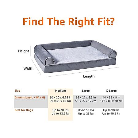 30" x 20" Amazon Basics Medium Couch Dog Bed w/ Pressure Relief Support (Grey) $14.99 + Free Shipping w/ Prime