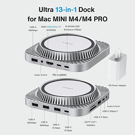 iVANKY 13-in-1 Mac mini m4 Dock with M.2 NVMe SSD Enclosure $60 + FS