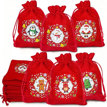 12-Piece 4" x 5.5" Yunaeduo Small Christmas Drawstring Gift Bags (Red) on sale for $9.99 - 50% off when you enter the coupon code