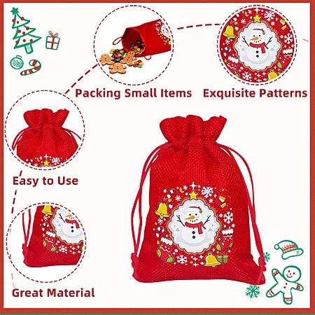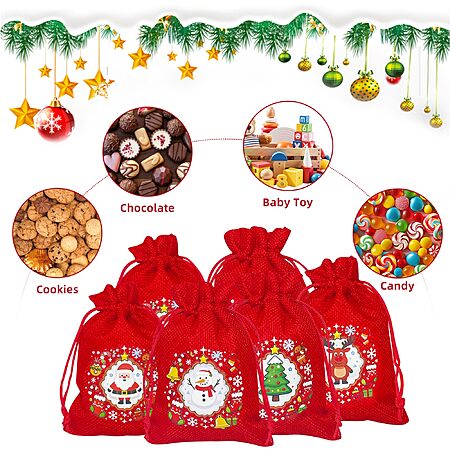 - You Will Receive: Each package contains 12 small Christmas gift bags, printed with 6 cute Christmas elements, including Christmas trees, Santa Claus, snowmen, reindeer, gingerbread men, and penguins. Each pattern has 2 pcs of burlap Christmas bags. These small gift bags can help you enhance the joyous atmosphere of the Christmas season and bring you an unforgettable holiday.