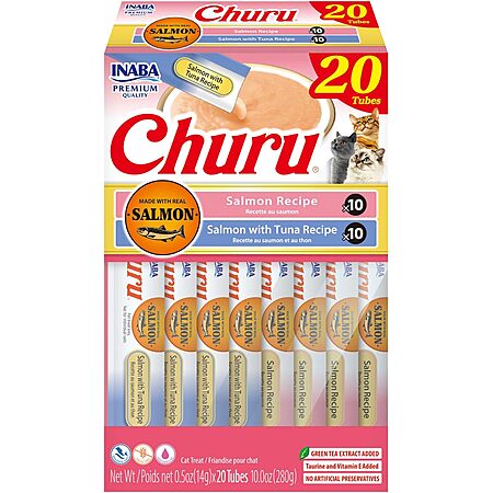 20-Pack 0.5-Oz INABA Churu Squeezable Creamy Purée Cat Treats (Salmon & Tuna Variety) for $9.88 - $1.98 when you 'clip' the