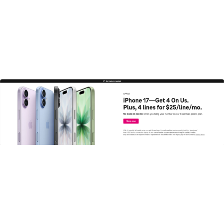 iPhone 17βGet 4 On Us. Plus, 4 lines for $25/line/mo.