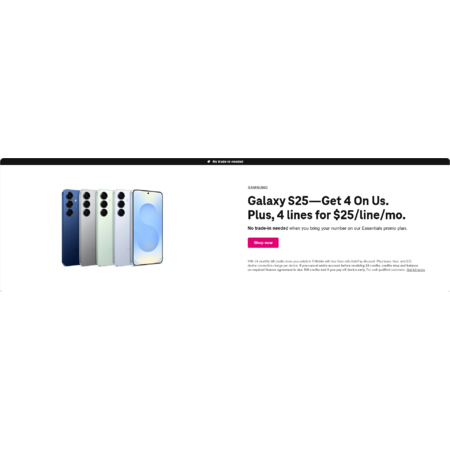 Galaxy S25βGet 4 On Us. Plus, 4 lines for $25/line/mo.