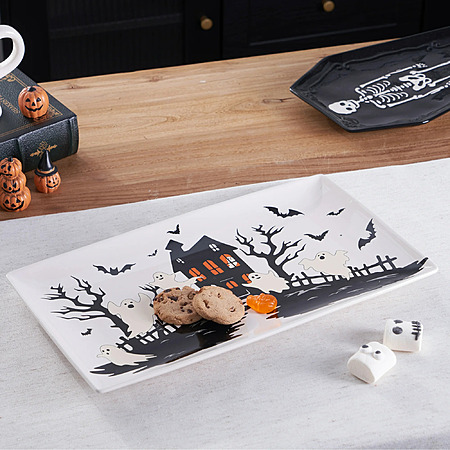 About this item- Spooky Design: This stoneware rectangle tray features a spooky Halloween season design, perfect for adding to your festive decor.