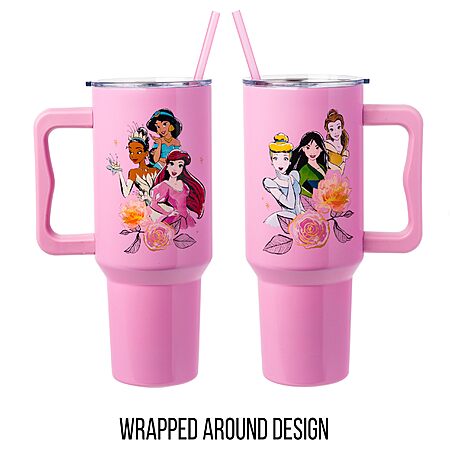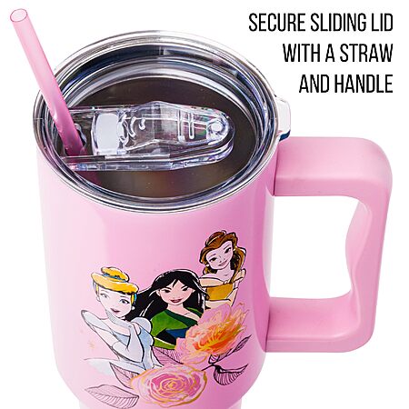 40-Ounce Silver Buffalo Stainless Steel Tumbler with Handle and Straw: Disney Lilo & Stitch $8.48, Disney Princess $10.88 + Free Shipping w/ Prime or on $35+