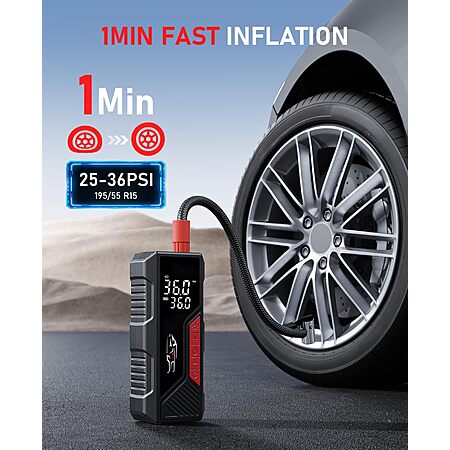 Model: Aneson Tire Inflator Portable Air Compressor, Cordless Air Pump for Car Tire 150PSI, Battery & 12V DC, Electric Bike Pump with Pressure Gauge, Auto Shutoff, for Bicycle, Ball, Motorcycle Accessories